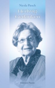 Nicola, so wurde ich kürzlich wieder angesprochen, das ist ein so wunderbares Buch! So wertvolle und schöne Gedanken. Dieses positive Feedback freut mich sehr!!! Hedwig wurde 105 Jahre alt, immer wach, interessiert, tiefsinnig aber auch lustig, so wurde sie von allen, die ihr nah waren, geschätzt und geliebt. Kurz vor ihrem 100. Geburtstag kam ich auf die Idee, ihre Gedanken zu notieren, um mir meine geliebte Patin und die vielen schönen Erinnerungen an unsere gemeinsamen Gespräche zu bewahren. So entstand dieses kleine Büchlein. Dass viele es lesen, ihre positiven Gedanken aufnehmen und sie weiterverbreiten, das wäre mein größter Wunsch! Bestellen kann man das Büchlein beim Pauer-Verlag: p.pfeffer@dunkel.de